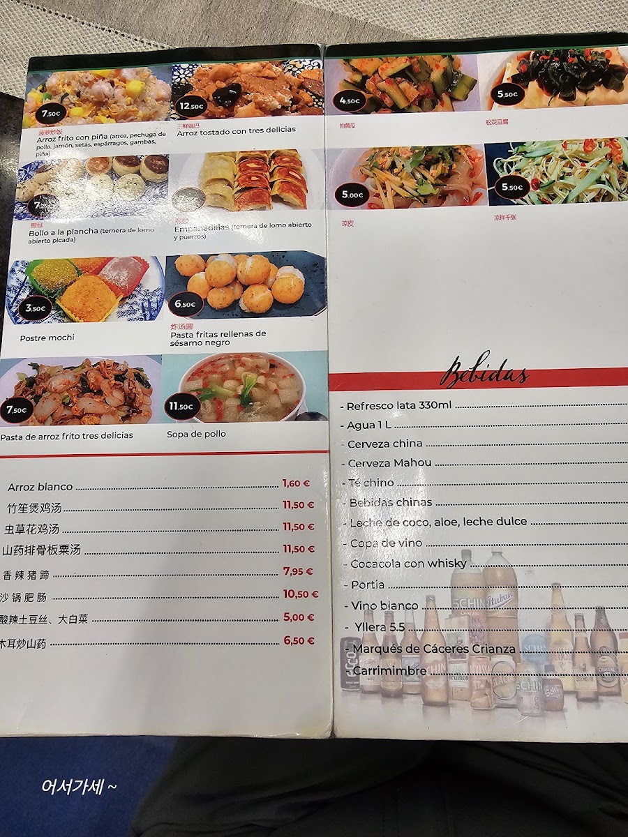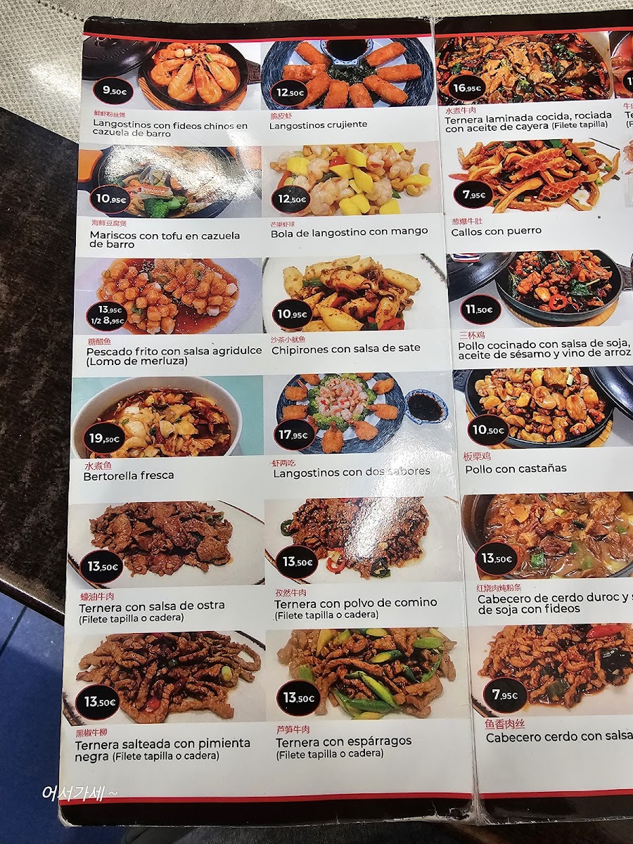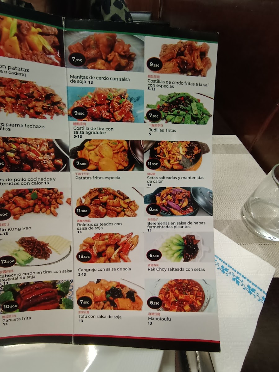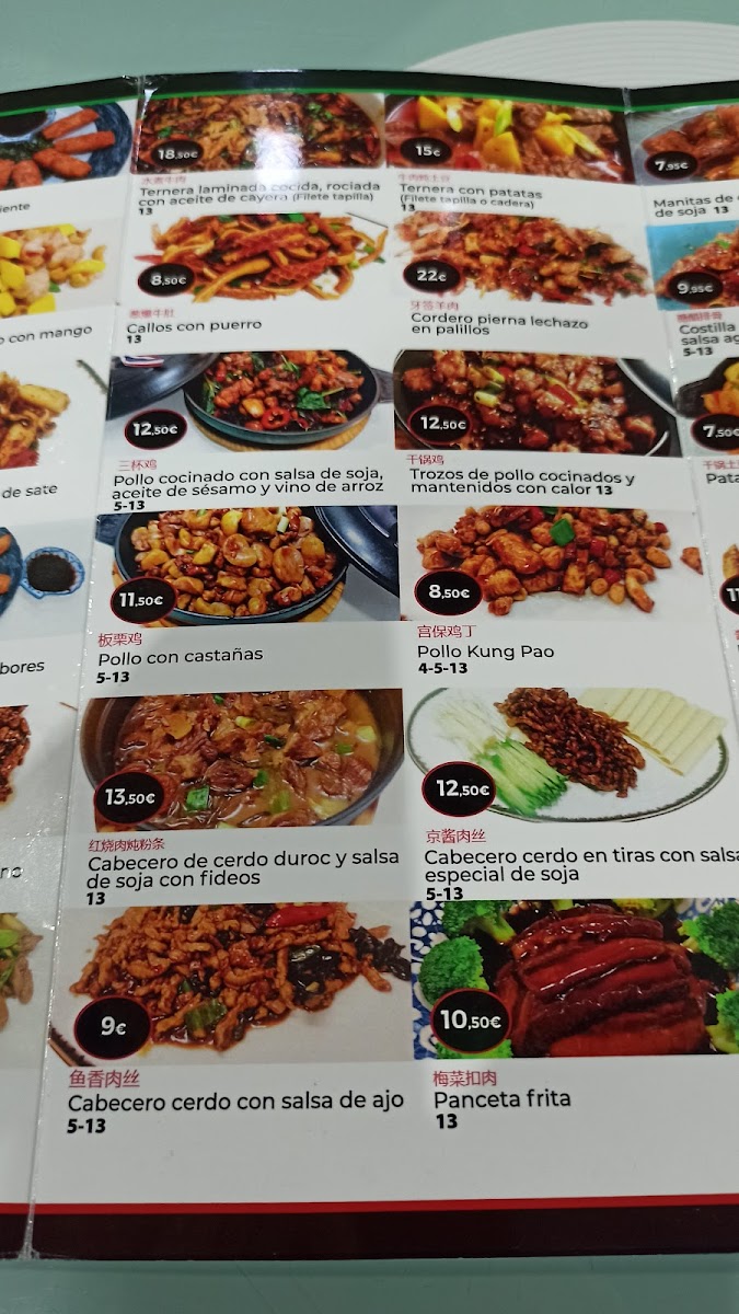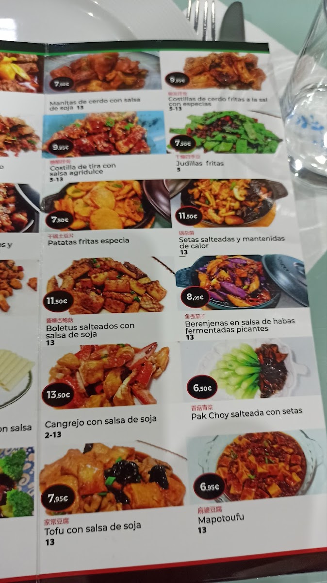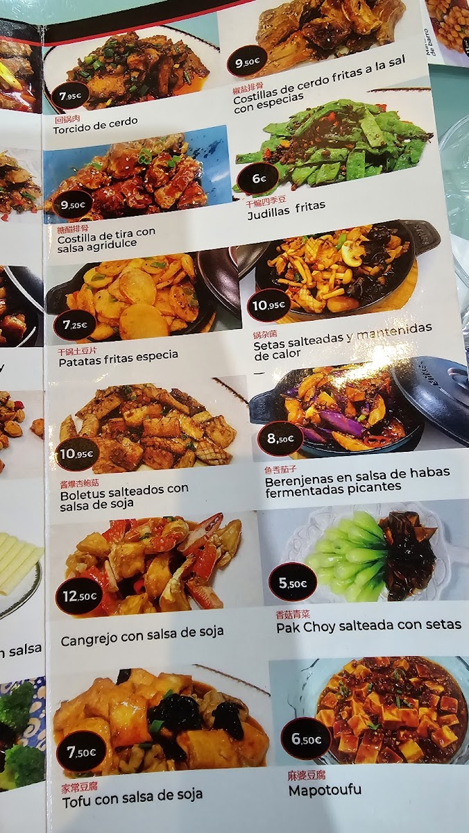 The menu features a variety of flavors and textures, from tender meat dumplings and crispy langostinos crujientes to warming selections like pollo con castañas and ternera salteada con pimienta negra. Rice and noodle options such as arroz tres delicias con cerveza china or fideos chinos con gambas provide satisfying staples that complement the savory mains.